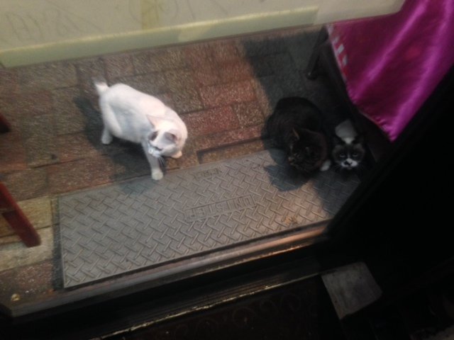 突然うちの店の前に沢山集まるようになり、戸を開けると一斉に大きな声で鳴き出す。